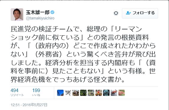 — 玉木雄一郎 (@tamakiyuichiro) 2016年5月26日