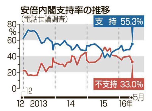 内閣支持率上昇55%、世論調査 米大統領広島訪問98%が好評価 | 2016/5/29 - 共同通信 47NEWS https://t.co/x2FGVNdWre