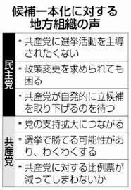 共産支持者より民進支持者が統一候補を支持しているとは意外でした。議員よりも支持者の方の方が現状をよくわかっているという事でしょうか。