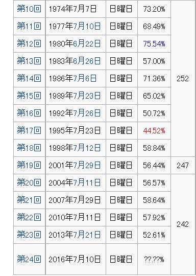 【愕然】参院選「行く」88%。2013年7月参院選前は「行く」92%で戦後3番目に低い投票率52.61%