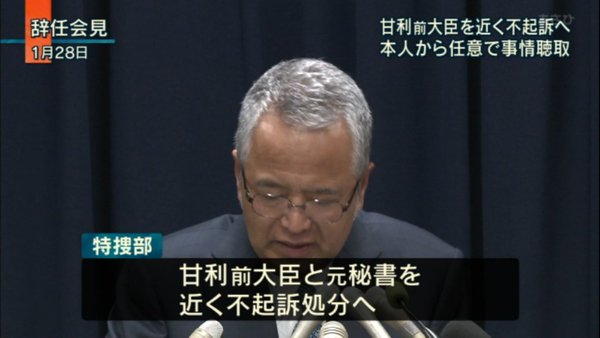 真っ白な小沢を黒だと追い掛け回した検察のやることだから、甘利真っ黒を白だと言う事に何の違和感も無いが、それでいいのか日本!爆発したらこの国は一気に崩壊するぞ。小役人ども・・
