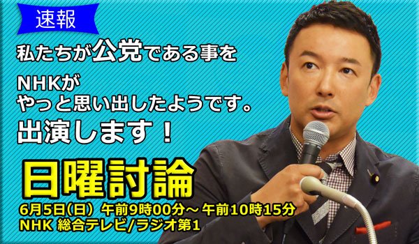 やっと山本太郎さん出演するそうです→ 日曜討論 - NHK 「より身近に」「よりわかりやすく」 みなさんの関心に応えます。 https://t.co/ZhVPqw7pWy