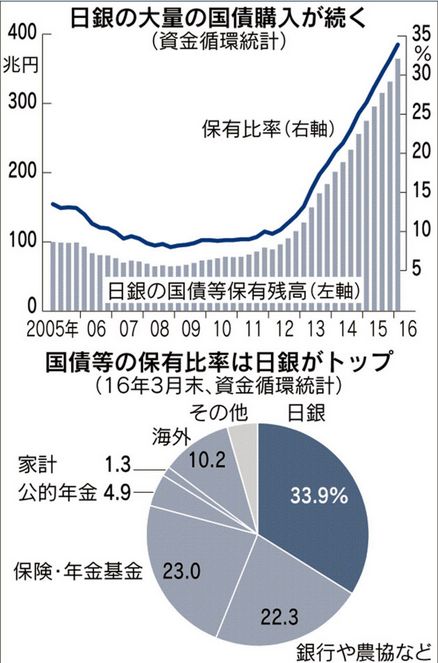 国債保有、日銀が3分の1超す 買い取り限界論も :日本経済新聞