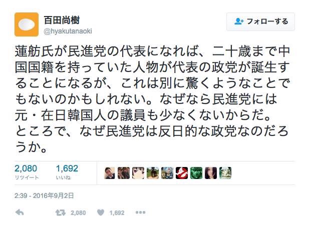 @botan_nabe @alsnova 私だって蓮舫を支持しているわけではありませんし、好きでも何でもないんですが、嫌いとか態度が悪いとかいうレベルの「叩き」の一環で国籍の問題を持ち出してくるのはさすがにおかしいだろうと。