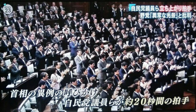 安倍首相も、拍手した自民党の議員たちも、心情的な演出で自己陶酔するのではなく、リアリティと責任感を持って政策を論じるべきだ。