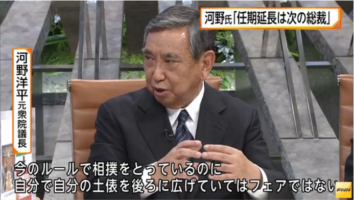 【自民党総裁任期延長】河野洋平『党で決める事だが、今の総裁(安倍)は今のルールで選ばれた。ルールを変え自分の任期を延ばしたんじゃ話にならない。現総裁の任期延長はダメ。やるなら次の総裁から』←正しい。ルールを守らず、都合悪いとルールのほうを変えようとするアベゾウ自民体質は極めて問題 pic.twitter.com/4ALk12aD59
