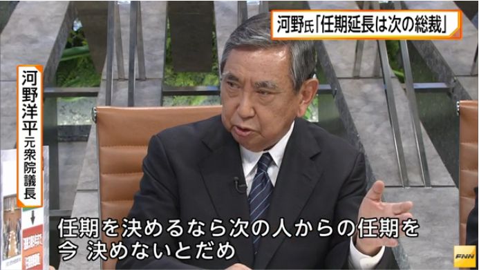 河野氏は「一番力がある人の任期を任期中に延ばすのはフェアじゃない。自分で自分の任期を決めるのはやるべきではない」と強調した。