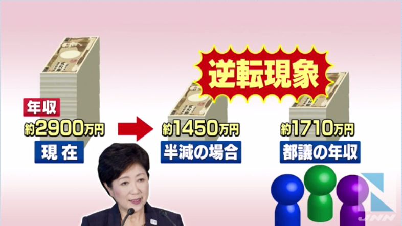 「毎月の給与とボーナスについて50%減額いたします。すぱーんと減額、半分です。年収とすれば1448万円という数字となります」(東京都 小池百合子知事 先月9日)