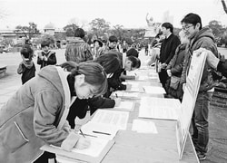 今回も、同決議には反対しながら、日本主導で別の「核廃絶に向けた共同行動を求める」決議を提案しているが、オーストリアなどの決議が法的拘束力をもって核兵器そのものを禁止することを主張しているのに対し、日本の決議は、「近年の米大統領の広島訪問を歓迎する」と賛辞を送り、「核兵器の禁止」すら求めず、抽象的に「核保有国と非核保有国の有意義な対話」を呼びかけるだけの空っぽの内容であった。安倍首相は「二三年連続の採択」「アメリカを含め、一六七カ国の賛成を得た」「そのために核兵器禁止条約の決議に反対したのは妥当」と弁解しているが、そこに被爆国として独自性はない。政府は「今後の交渉には参加する」というものの、被爆国の仮面を被ってアメリカの代弁者として横車を押す姿は、世界から完全に見放されている。
