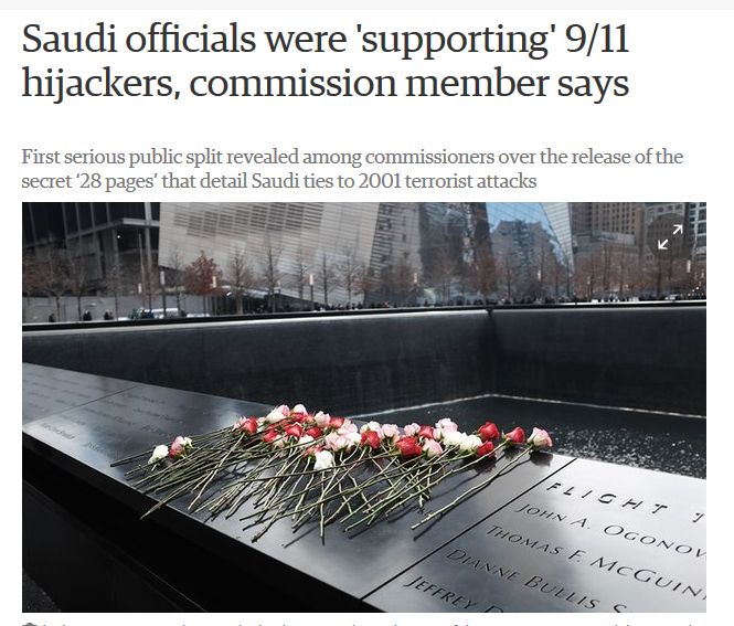 9/11調査委員会の元委員:「サウジ政府関係者らが、9/11のハイジャック犯らを支援していた。」(英ガーディアン)https://t.co/FwfQhmTjKb