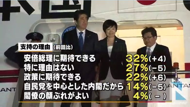 支持率は韓国に対する政府の強い対応が評価されたということなのでしょうかね。トランプが大統領になるということで不安感が強まり、強い姿勢を打ち出したのが好感を得たのでしょうか。