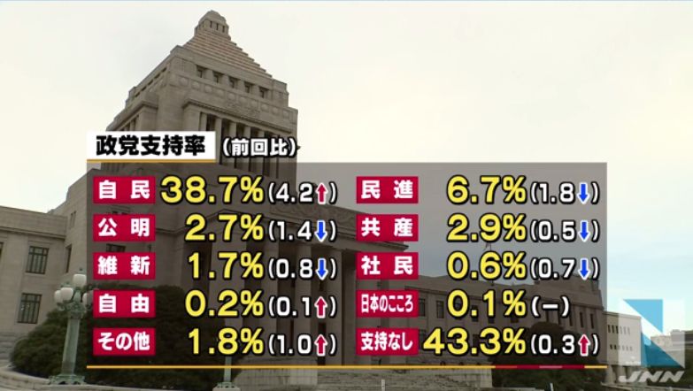 動画→内閣支持率67%に上昇、JNN世論調査