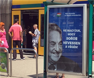 <「ハンガリーを移民国家にしようとする人物の名前とその手法について、われわれにはお見通しだ。それ故、移民を国家安全保障の問題と見なす『ソロスを止めろ』法案を起草し、提出した」とオルバン首相は選挙前に語っていた。>