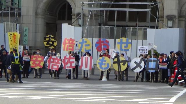 司会者も「佐川長官はあと4か月の任期で7千万円の退職金が出るそうだ。許せますか?」と呼びかけた。劇団わらび座の末武あすなろさんはひな祭りの衣装で登壇し、「佐川やめろ」の自前のシュプレヒコールを披露し、場を盛り上げた。(M)