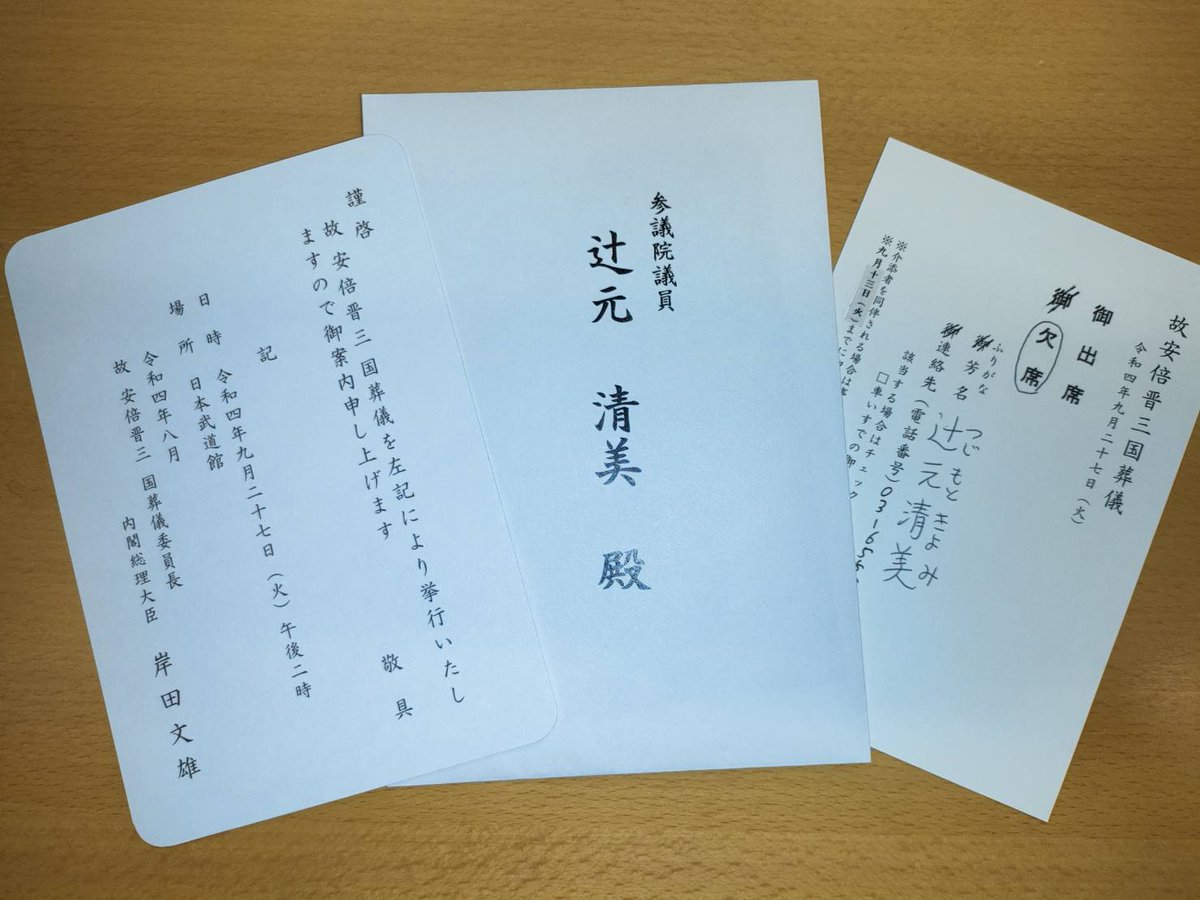 道見泰憲議員のツイッター:「国葬に反対する方々にお伝えしたい…。分かったから…。賛成して欲しいとか野暮なことは言わないから…だからもう黙ってろ」