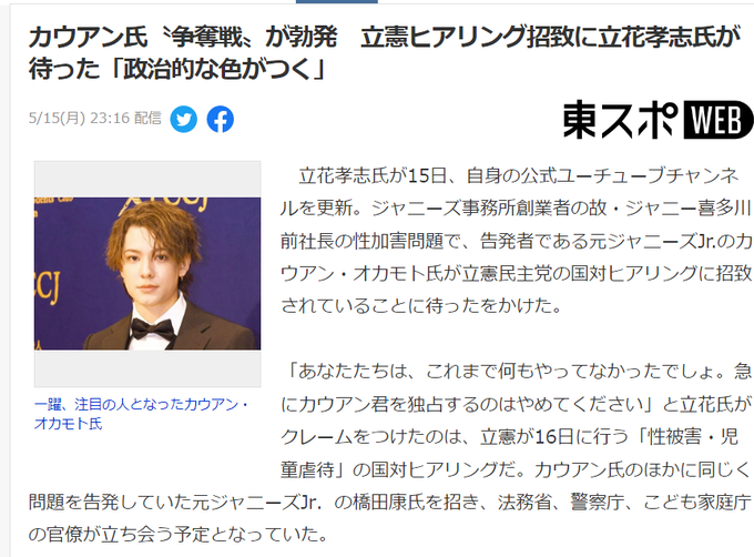 4月に日本外国特派員協会で自らの被害について会見した元ジャニーズJrのカウアン・オカモトさんの告発が事実であれば、実態は「連続児童性虐待事件」と言っていい重大問題だ。ところが、ジャニーズ事務所を連日、取り囲んでカメラを向けることもなく、記者会見を強く要求するわけでもない。「とりあえず報じた」というアリバイ程度の報道ばかりだ。