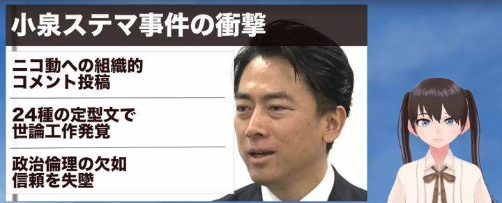 特に問題視されたのは、高市氏をビジネスエセ保守と抽象するコメントや小泉氏について「石破さんを説得できたのすごい」といった明らかに作為的な賞賛コメントを定型文として用意していたことです。24種類にも及ぶテンプレートが用意され、支援者に配布されていたという事実は、小泉陣営の焦りと危機感を如実に物語っています。