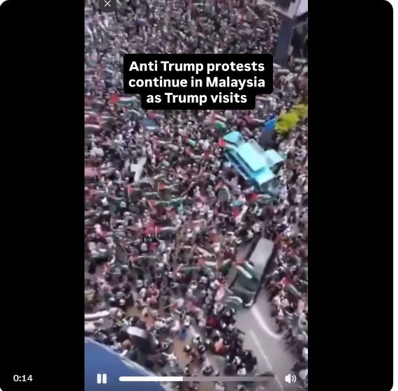 トランプ大統領が中東地域に到着した際、マレーシアで反トランプ抗議活動が発生。