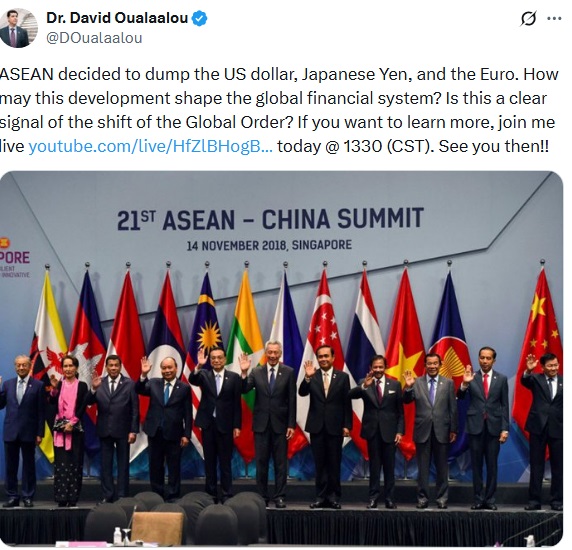 ASEANは米ドル、日本円、ユーロを放棄することを決定した。この動きは世界金融システムにどのような影響を与えるのか?これは世界秩序の転換を示す明確なシグナルなのか?詳細を知りたい方は、本日13:30(CST)にhttps://youtube.com/live/HfZlBHogBaMでライブ配信に参加してください。それではお会いしましょう!!