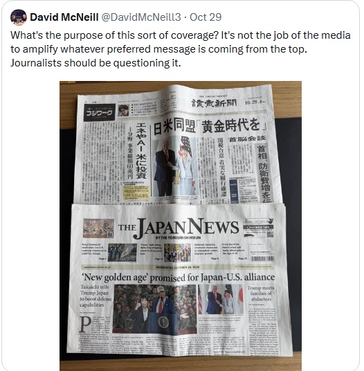 このような報道の目的は何なのか?メディアの役割は、上層部から発信される都合の良いメッセージを拡大することではない。ジャーナリストはそれを疑問視すべきだ。