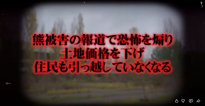 それが、クマ被害の報道で恐怖を煽り、土地価格を下げ、住民も引っ越していなくなる――そういったことを狙っているんじゃないのかなと。
