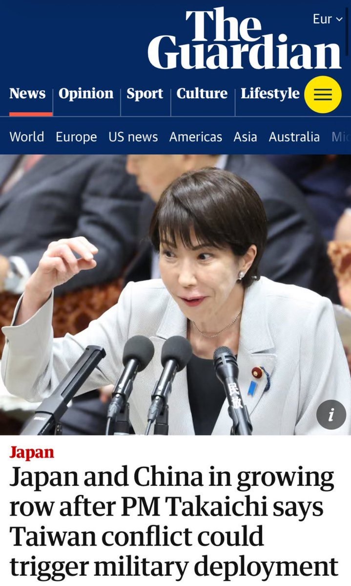 🇬🇧主要新聞The Guardianが高市早苗の異常性を報道。「日本軍が侵略した残虐性を中国は忘れていない。」トランプは来年中国訪問を習近平に打診、マクロンは習近平をG7に招待、メローニも中国訪問で習近平と親しい。イギリスは異常性と報道。台湾も非難、ロシアは出禁。高市早苗だけが浮いた。