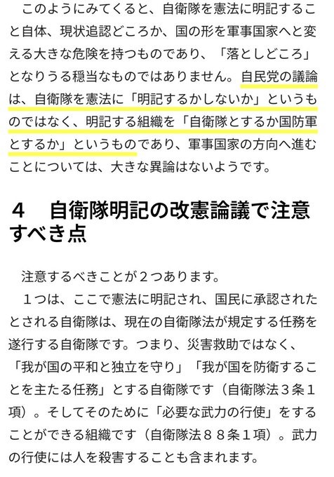 伊藤先生は、自衛隊を憲法上明記すべきと仰ってた気がします。自衛隊は明らかに軍隊です。国防軍として、憲法に明らかにすべきと思います。