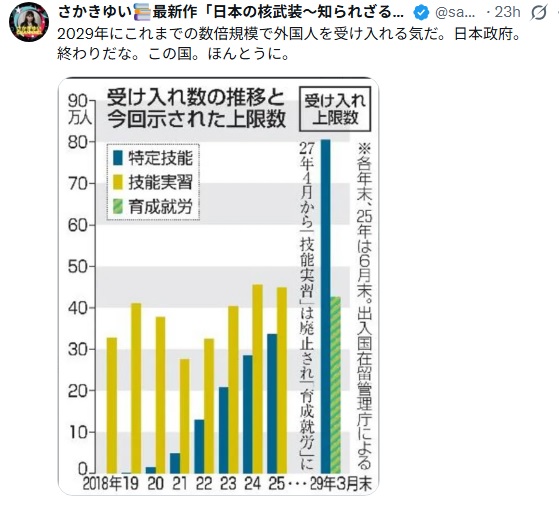 特定技能と育成就労の外国人材 2028年度末までの上限を計123万人に 政府が算出(日テレNEWS NNN)https://t.co/CTHiDDQDEK