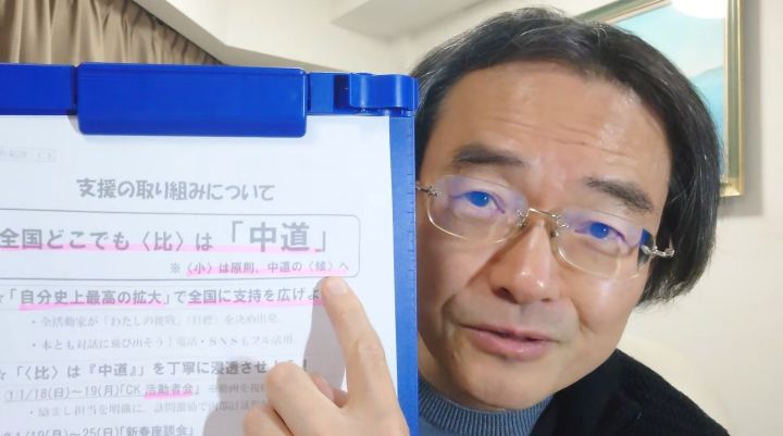 立憲民主党内部、あるいは公明党・創価学会、これの内部の話をこのチャンネルで色々させてもらってますけど、今日も早速私のところに創価学会内部のあれがあの巡り巡って私のところにも送られてきました。これでございます。もう司令が出ております。え、支援の取り組みについて全国どこでも比例は公明と、え、要するに比例は公明と書いてくださいということで、もう創価学会に司令が出ました。これ今日出ました。えっと、1月18日、日曜日、今日の司令でございます。早速私の手元にも入りましたけど、これがですね、賞って書いてますから、これ、えー、小選挙区のことです。小は原則公明の候補のこ、こへってここがやっぱり、あの、皆さん昨日の動画でも説明いたしましたけど、これ比例は公明ってこう書いてますね。そうするとこの米印をしてこれ書はま、小選挙区のことなんだけど小選挙区は原則公明の候補者へと書いてあります。