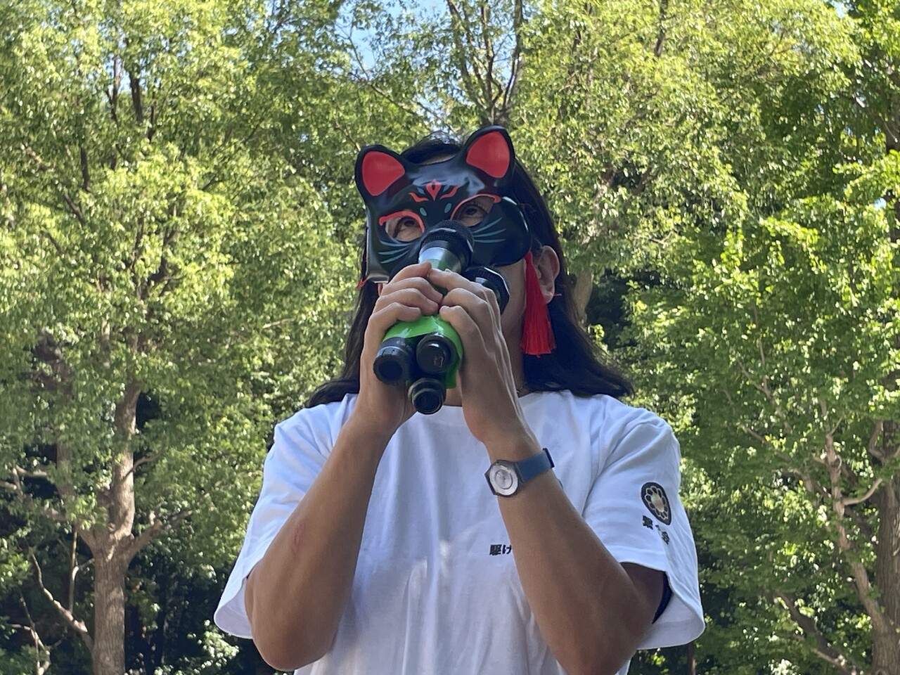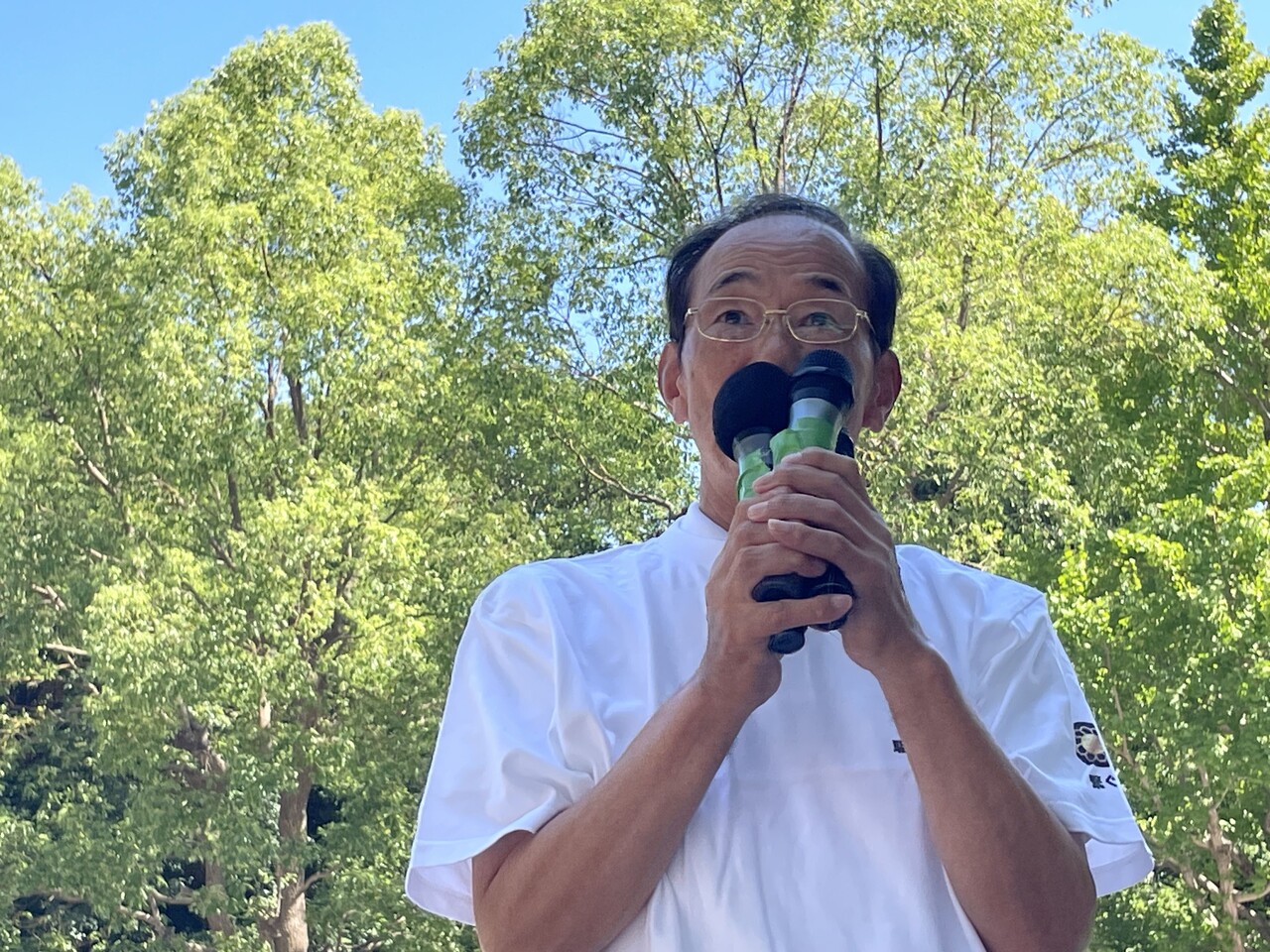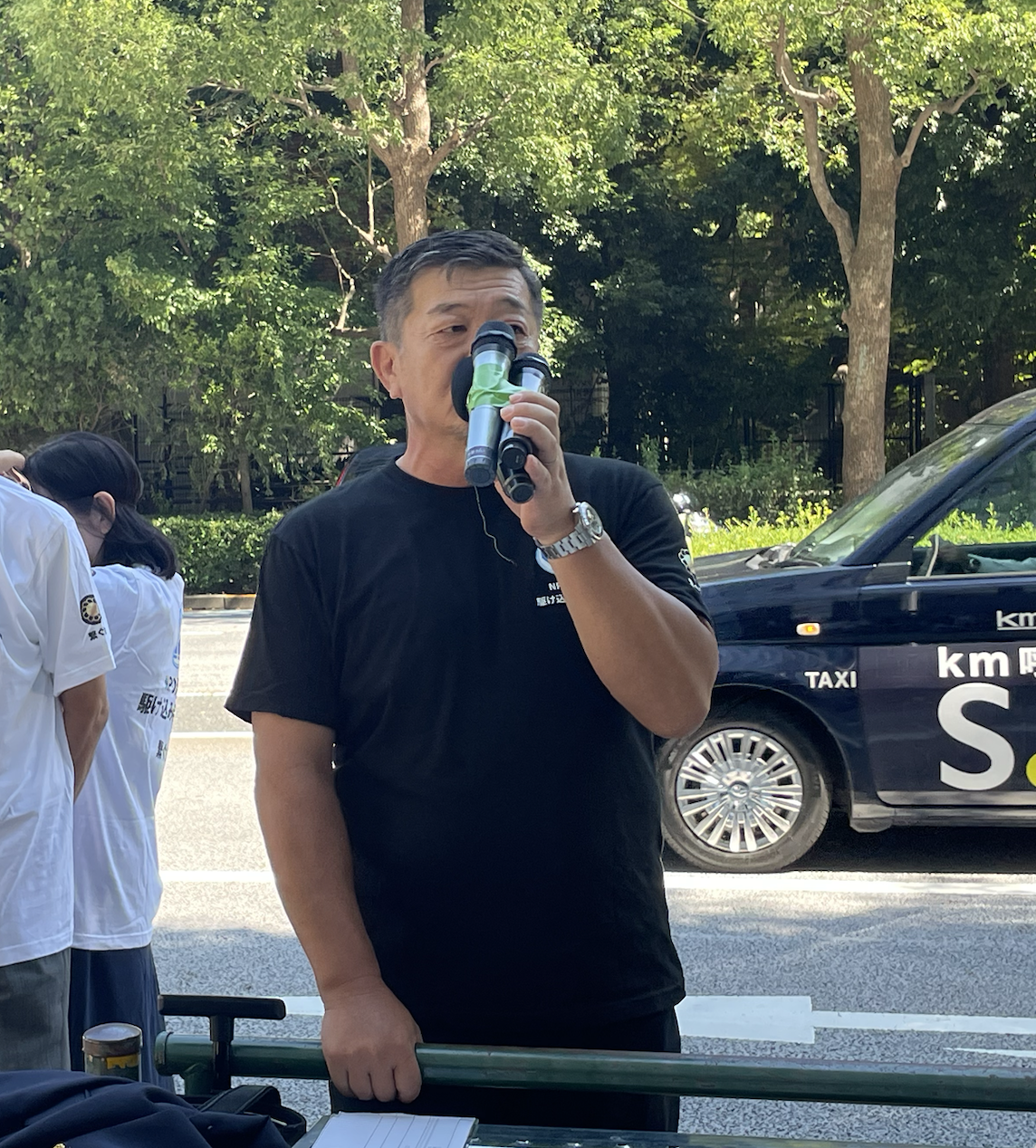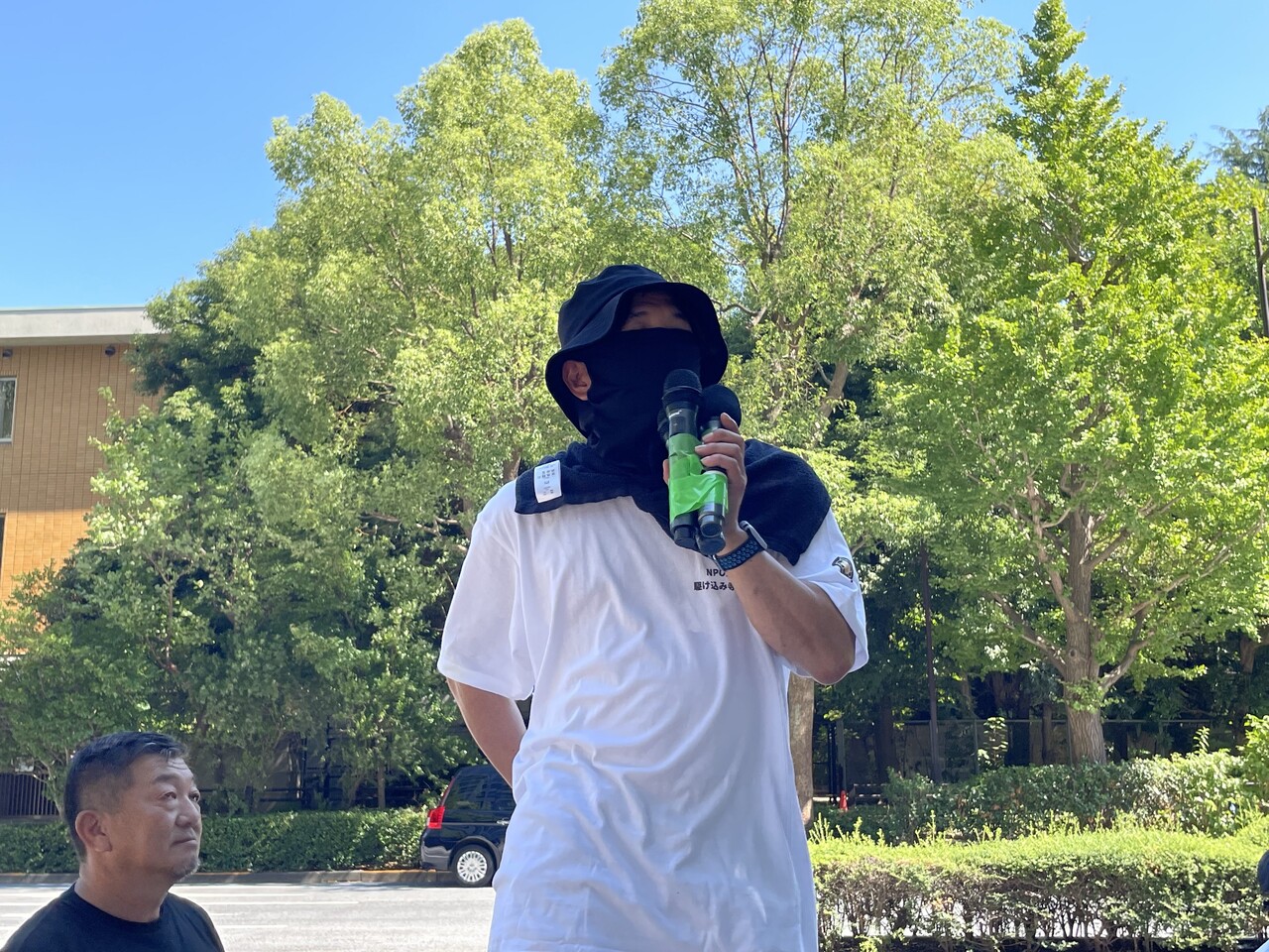 周辺の歩道には60人ほどが集まり、訴えに耳を傾けていた。