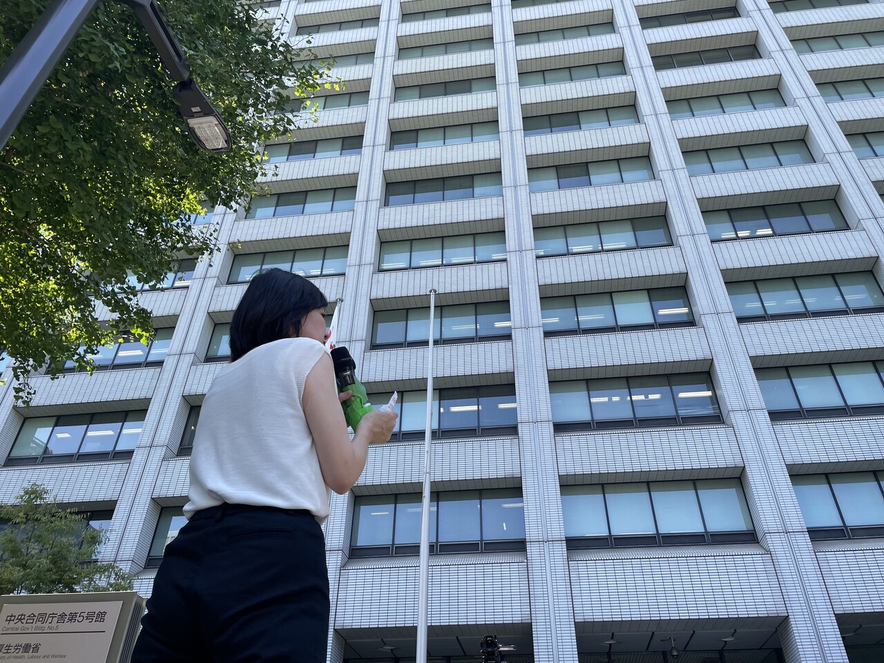 「私の元には、コロナワクチンを打って家族を亡くされた約600人の方々が相談に来られています。そして、認定された方々はその半数に満たない。まだまだなんです。コロナワクチンで命を落とされたということを、厚労省の職員の方々はご存じでしょうか。職員の方々、コロナワクチンで命を落とされた方々がここに来ています。ご遺族の方々が話をしますので、ぜひ聞いてください。警備員の方もぜひ、聞いてください」