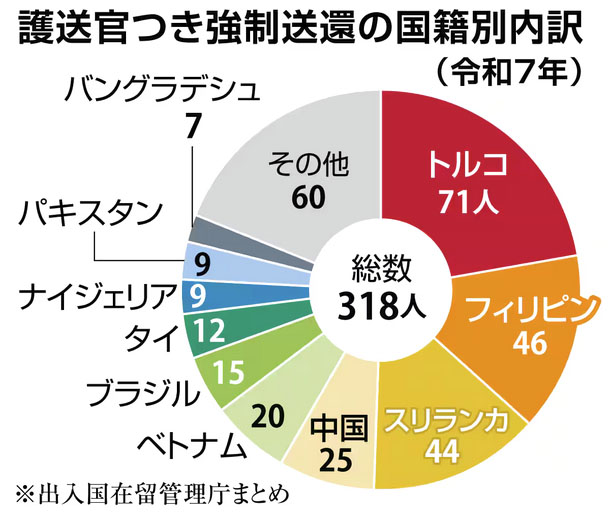 「護送官つき強制送還が最多318人 トルコ国籍最多71人 不法滞在ゼロプラン軌道に乗る」