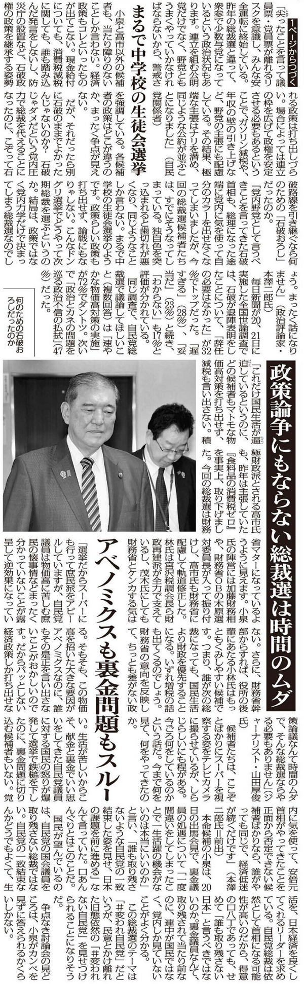 政策論争にもならない総裁選は時間のムダ