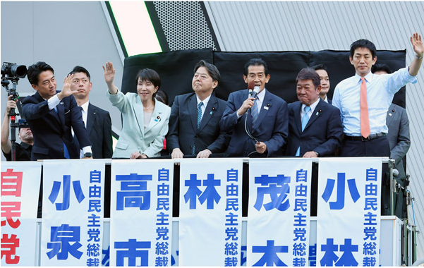 デガラシ選挙は本命が小泉進次郎農相(44)、対抗は高市早苗前経済安保相(64)、ダークホースが林芳正官房長官(64)という構図。25日は小林鷹之元経済安保相(50)が業界団体に支援を要請し、茂木敏充前幹事長(69)は自動車部品メーカーの工場を視察するなど、それぞれ活動した。26日の名古屋市の演説会のほか、党主催のイベントが2回予定されている。