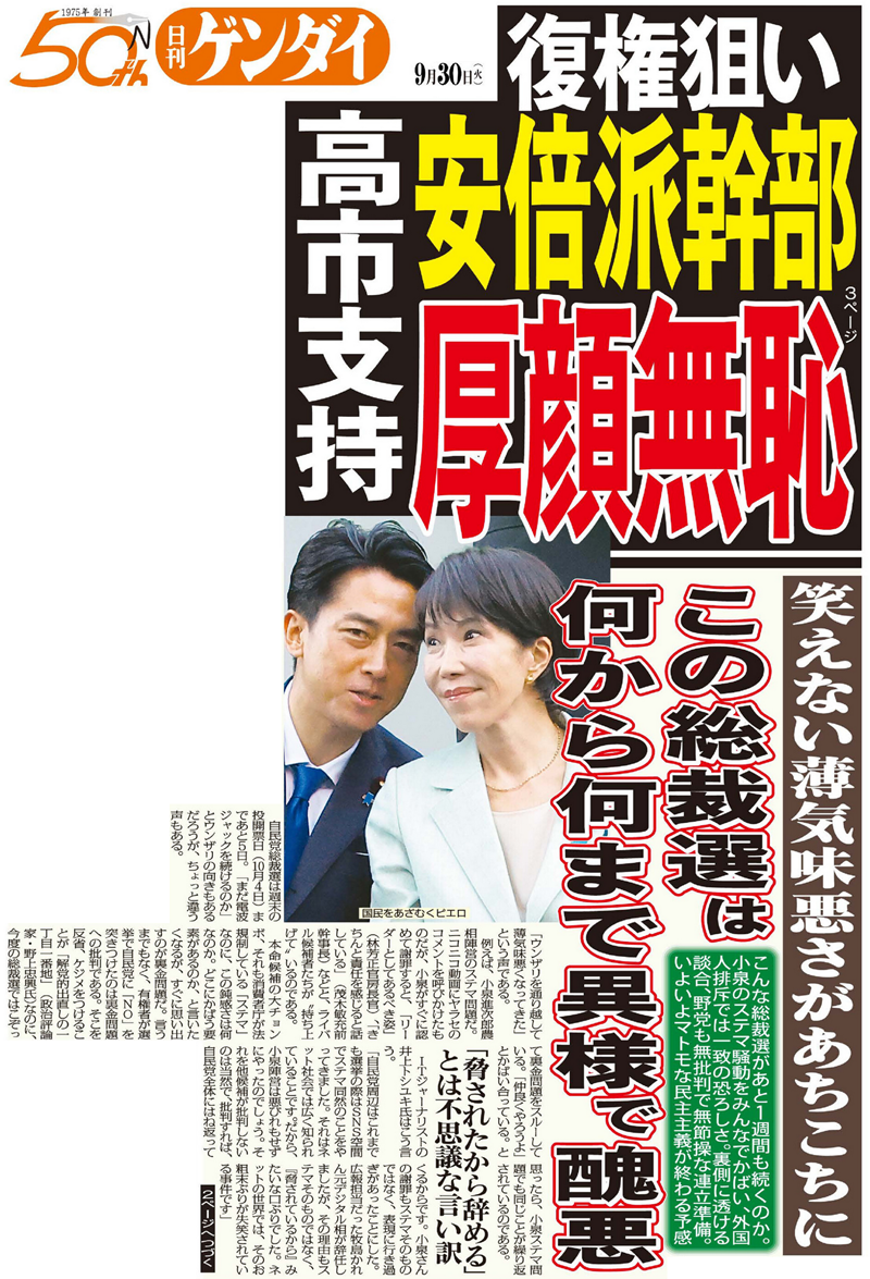 2025/09/29 日刊ゲンダイ ※後段文字お越し