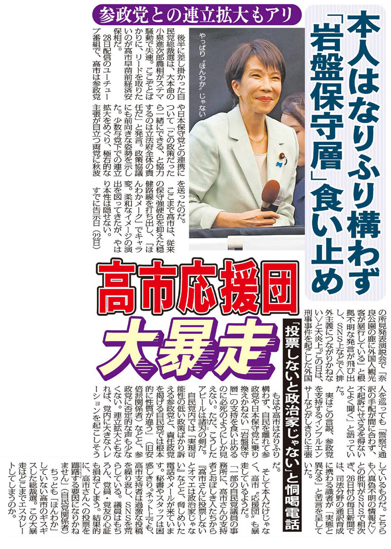 そして本人だけじゃなく、高市“応援団”も暴走しているようだ。
