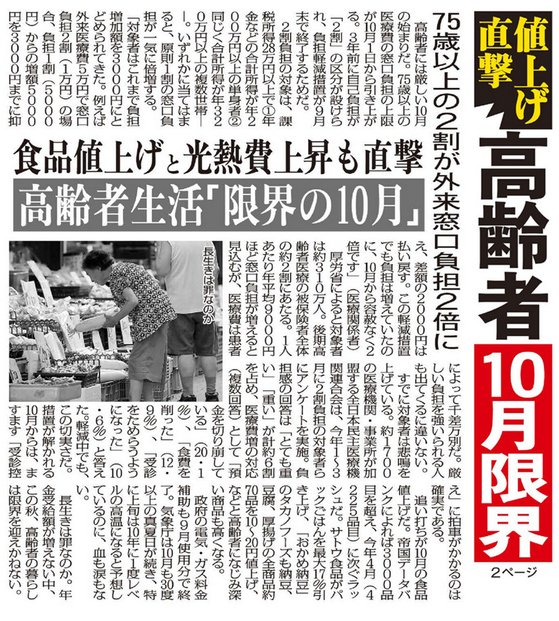 高齢者生活「限界の10月」の非情…医療費の窓口負担上限引き上げに、食品値上げと光熱費上昇が直撃