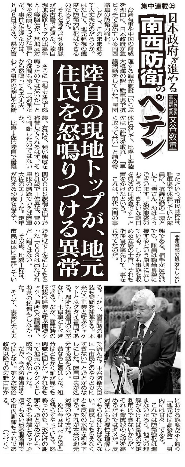 (1)陸自の現地トップが、地元住民を怒鳴りつける異常 日本政府が進める南西防衛のペテン
