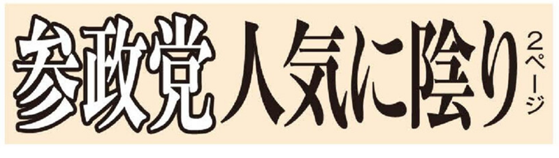 共同通信が6日発表した世論調査で、参政党の政党支持率は先月から2.8ポイント下落し、8.1%だった。国民民主(9.6%)に野党1位を奪われ、立憲民主(8.8%)にも追い抜かれてしまった。