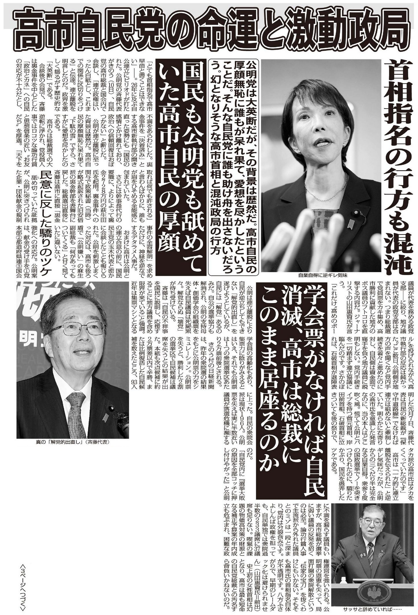 学会票がなければ自民消滅、高市は総裁にこのまま居座るのか