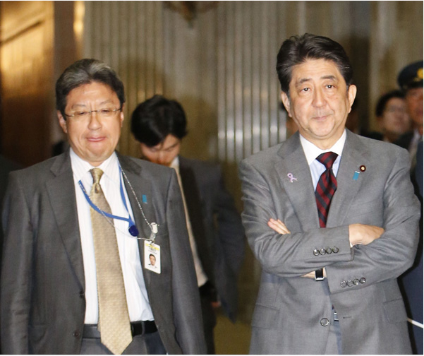 「影の首相」と呼ばれた今井尚哉首席秘書官(右は、安倍首相=当時)/(C)日刊ゲンダイ