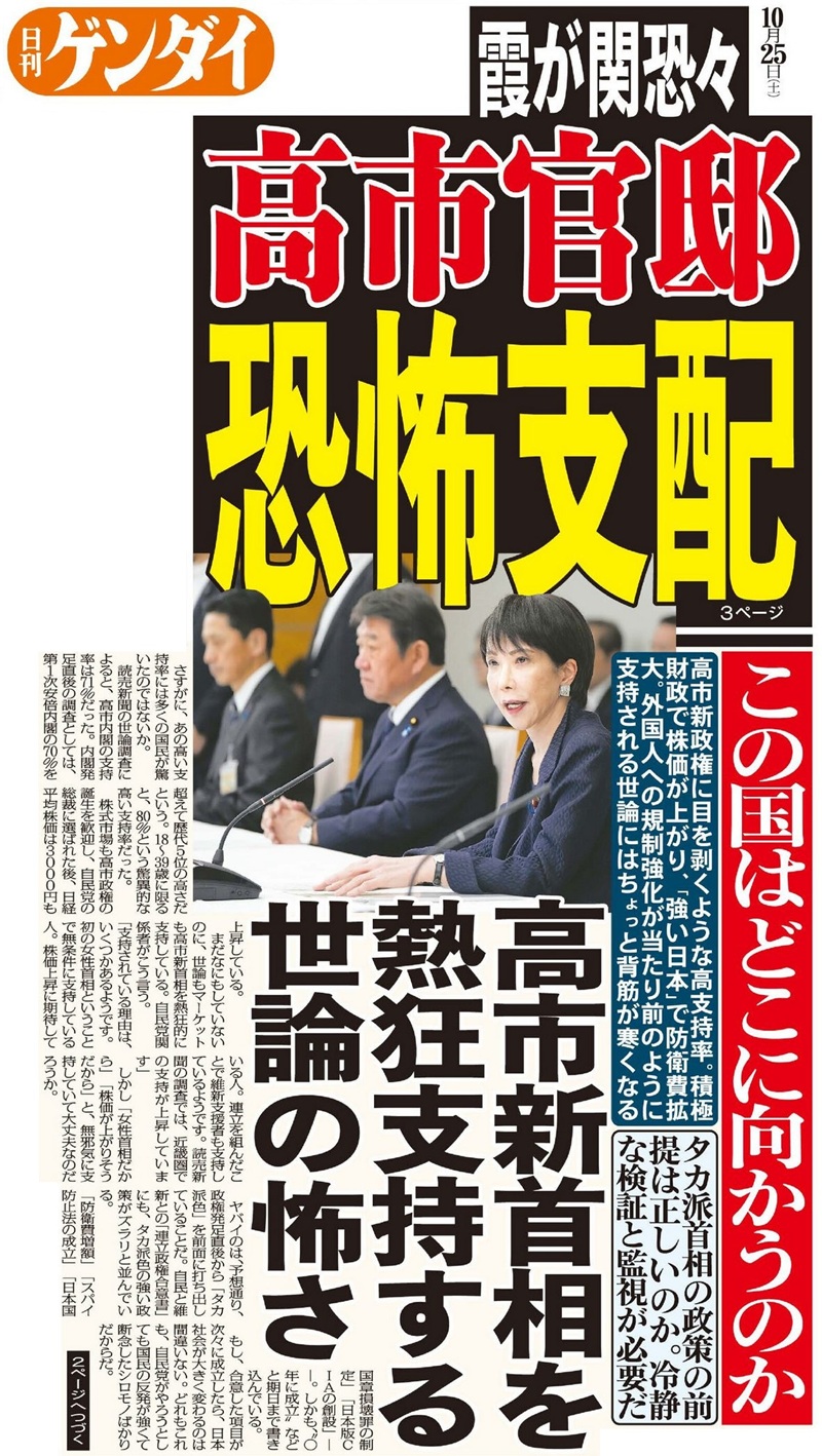 この国はどこに向うのか…高市新首相を熱狂支持する世論の怖さ