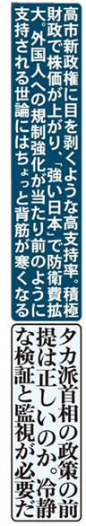 タカ派首相の政策は、本当に正しいのか、国益にかなうのか。もう少し冷静な検証が必要なのではないか。