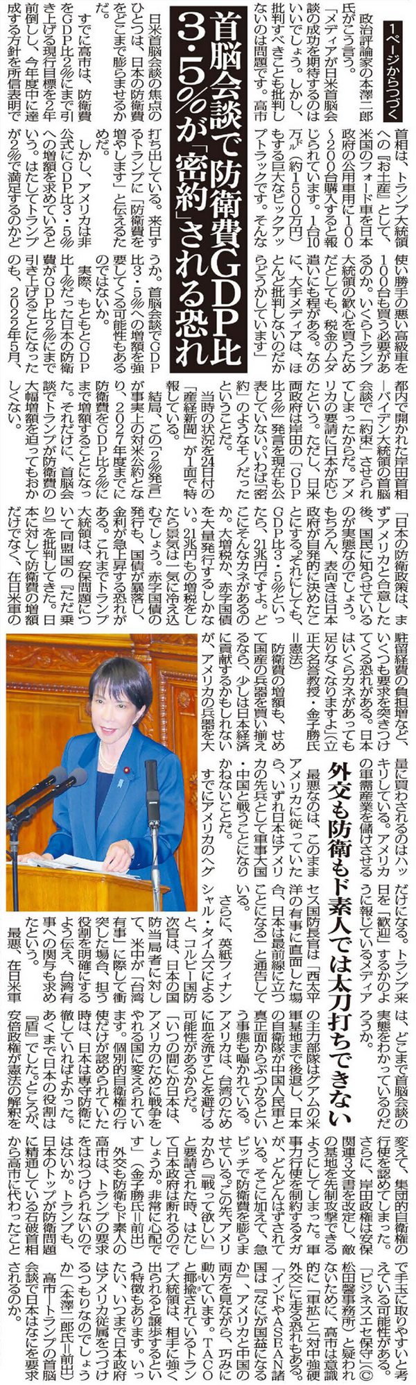 首脳会談で防衛費GDP比3.5%が「密約」される恐れ