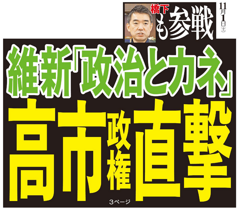 馬場伸幸前代表が後ろ盾の藤田執行部と対立する創設者の橋下徹元大阪府知事も参戦し、赤旗にエール。面白くなってきた。