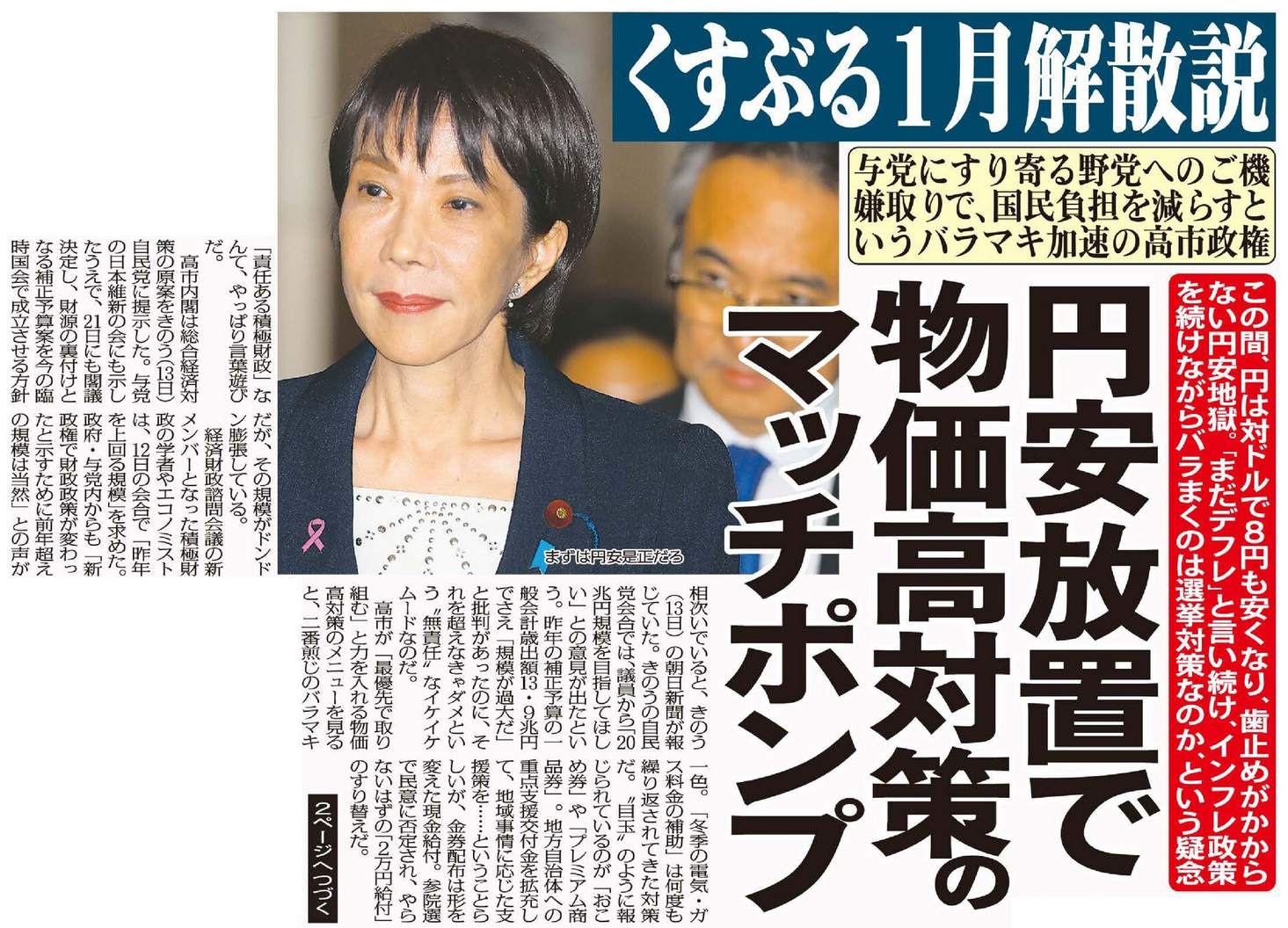 くすぶる1月解散説…円安放置で物価高対策のマッチポンプ