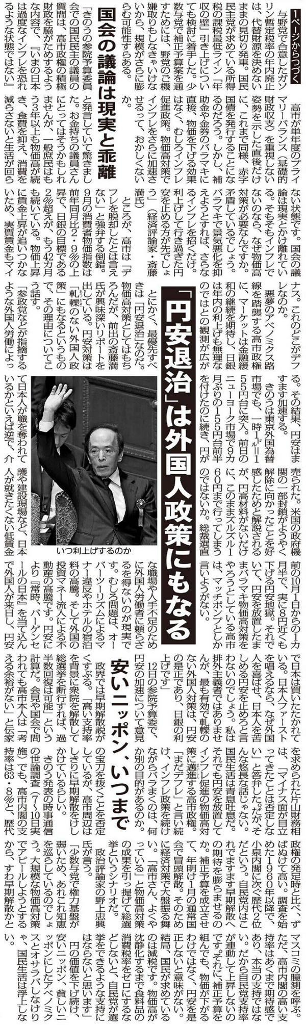 円の価値を下げ続け、安いニッポン、貧しいニッポンにしたアベノミクスとオサラバしなけりゃ、国民生活は浮上しない。