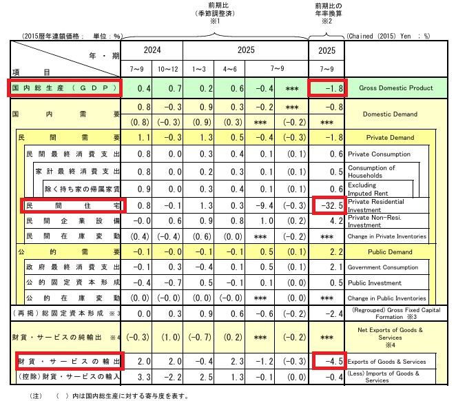 11月17日に2025年7−9月期GDP速報値が発表された。