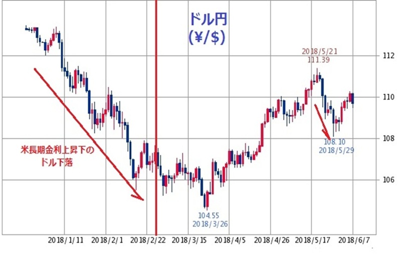 米国長期金利上昇は通常はドル上昇要因だが、金利上昇がインフレ期待上昇によるものである場合は実質金利が低下してドルは下落する。