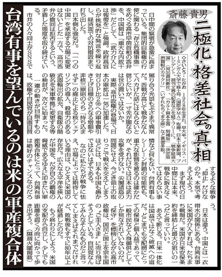 台湾有事を望んでいるのは米国の軍産複合体 二極化・格差社会の真相